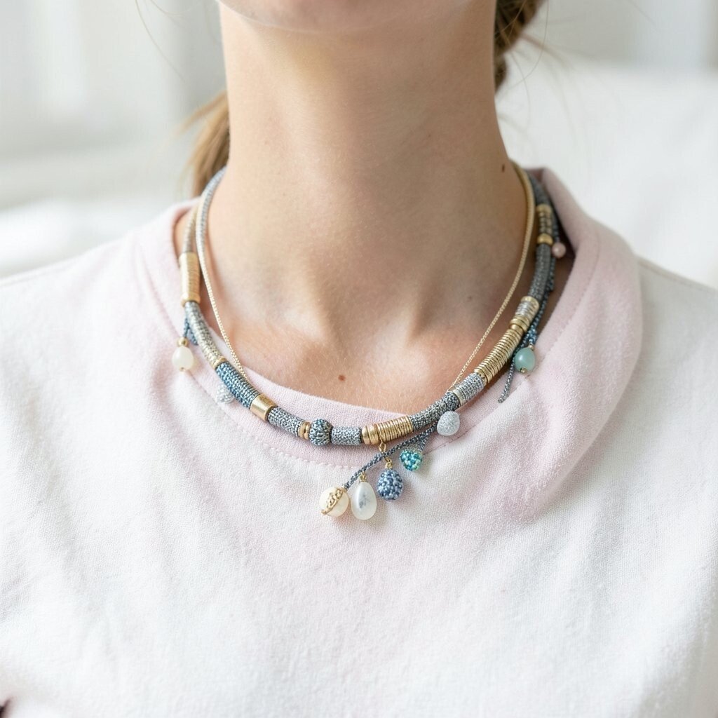 Fabric necklaces are easy to store and don’t tangle like metal chains. Keep them in a drawer or hang them on a jewelry stand. They’re low-maintenance and easy to access whenever you need them.