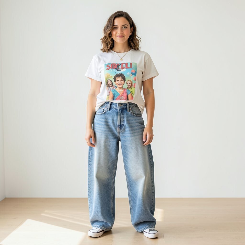 This look is easy to wear on warm days because the tee is short and the jeans can sit comfortably at the waist. Add chunky sneakers or simple slides depending on your plans.
