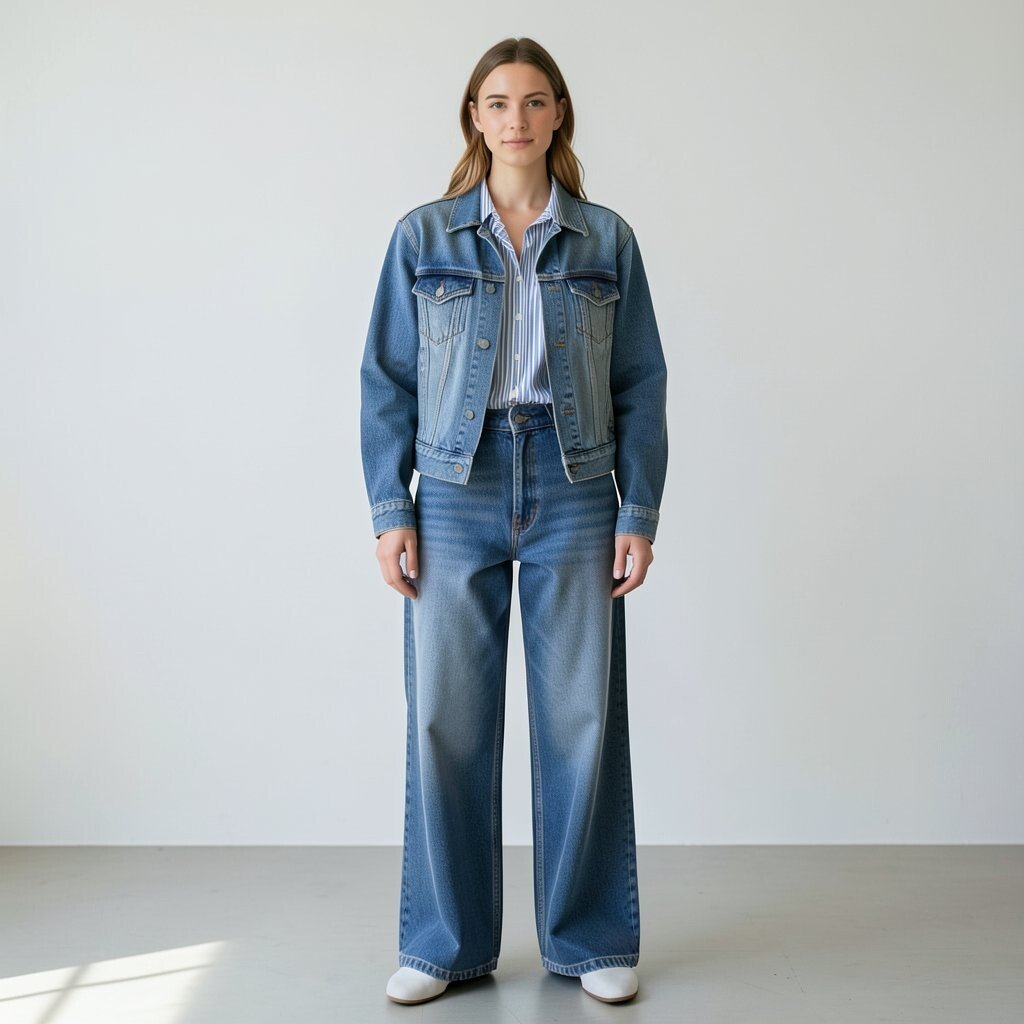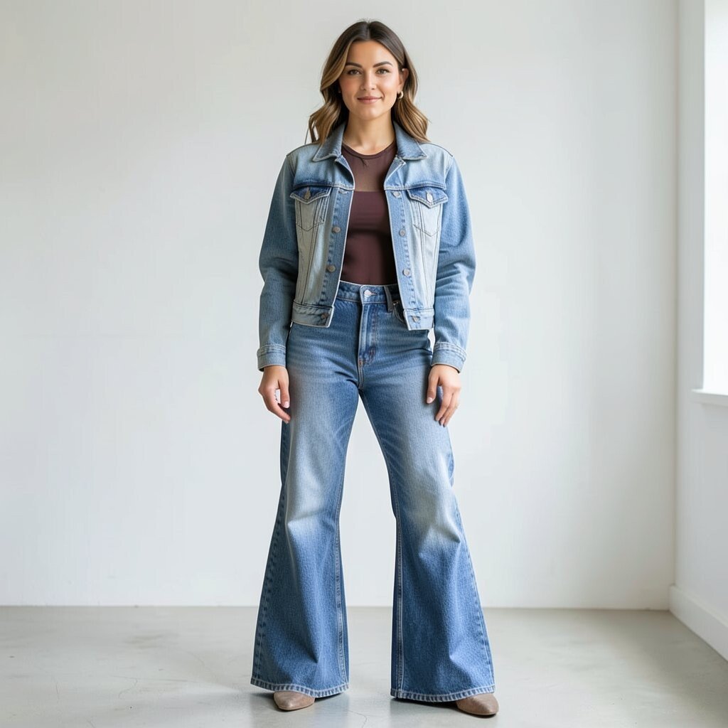 This look can make your legs look longer and your outfit feel more put together. A medium-wash jacket works well with most flares, especially if the denim tones are close. Platform shoes or boots can add extra height and keep the retro style strong.