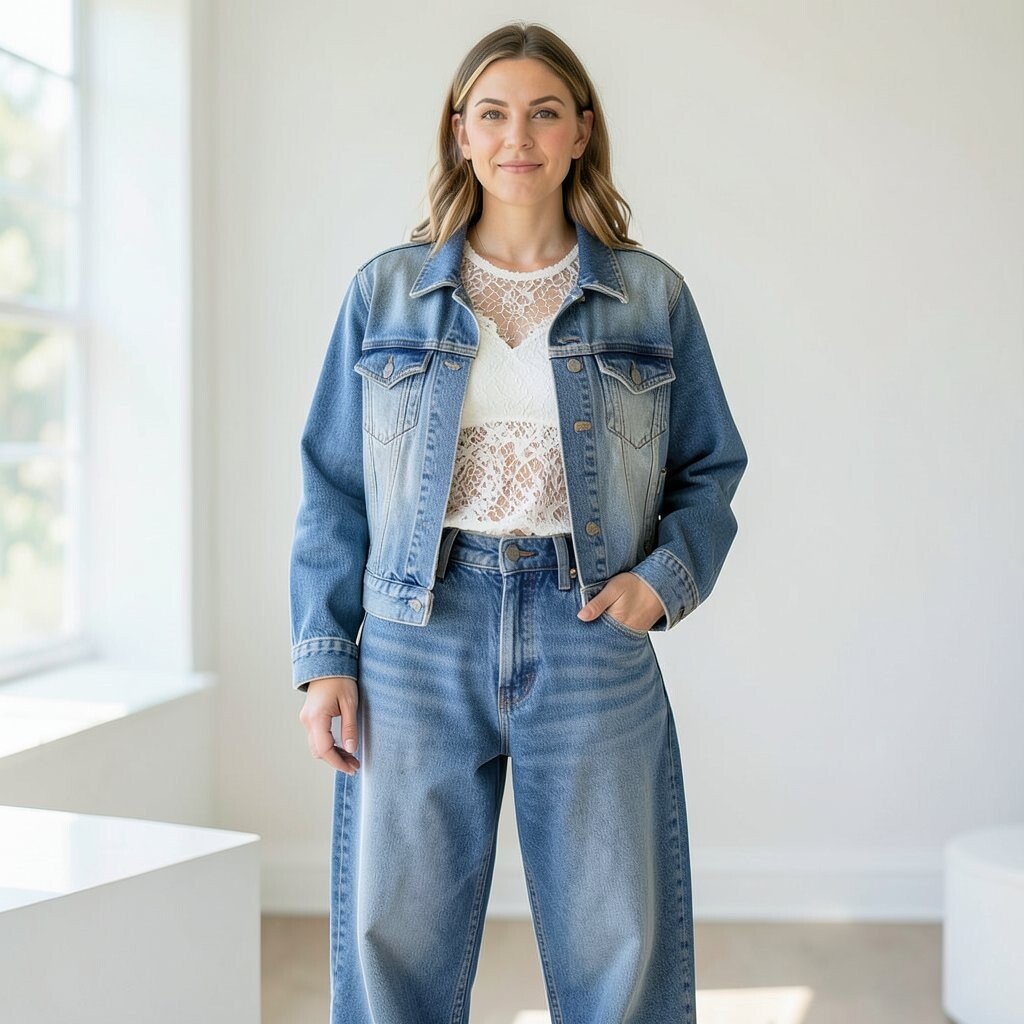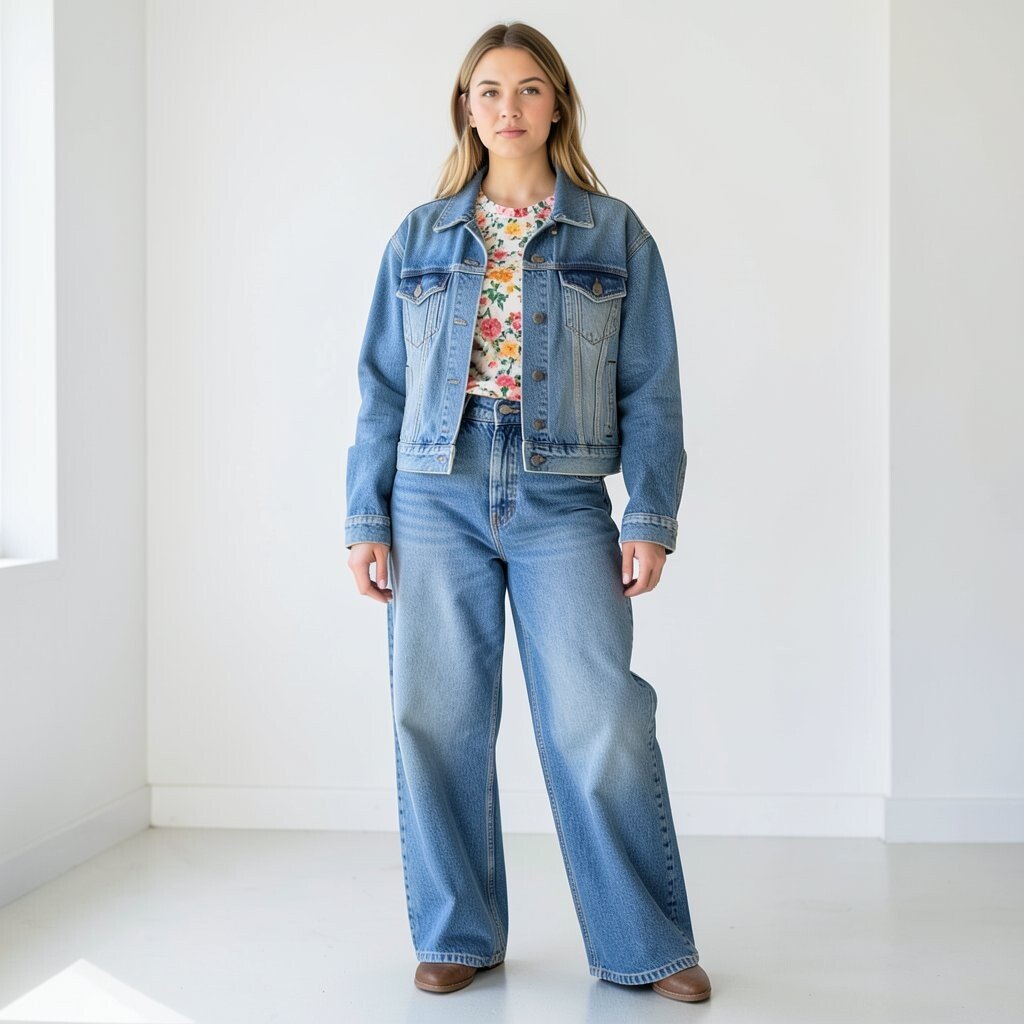 This style is nice for casual days, road trips, or outdoor events. Light-wash denim on denim can feel cheerful, while darker pieces give a more grounded look. Sneakers or work boots both fit the outfit well.