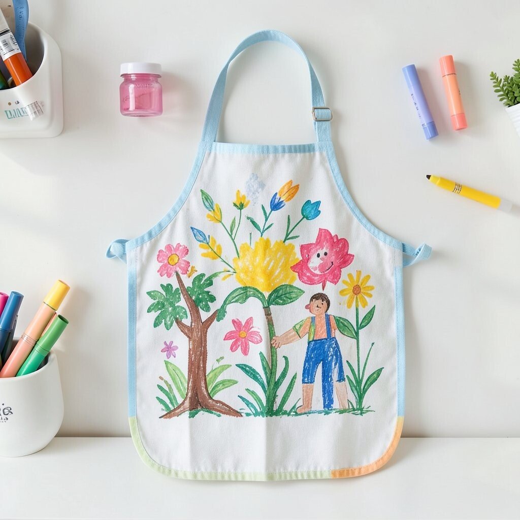 Crayon art aprons protect clothes while giving kids a true artist look. The bright fabric and pocket details make them feel special right away.