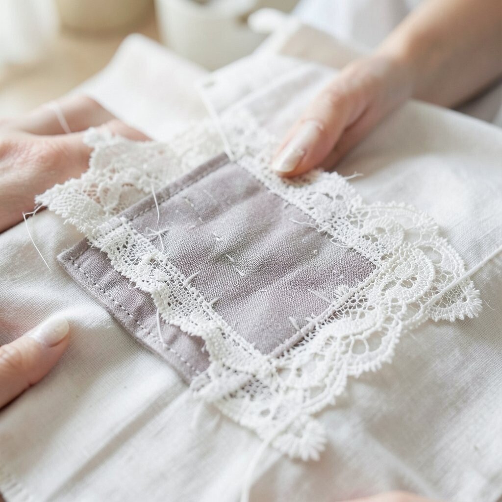 Use lace to outline patches or as a complete overlay. It adds texture and a vintage feel.