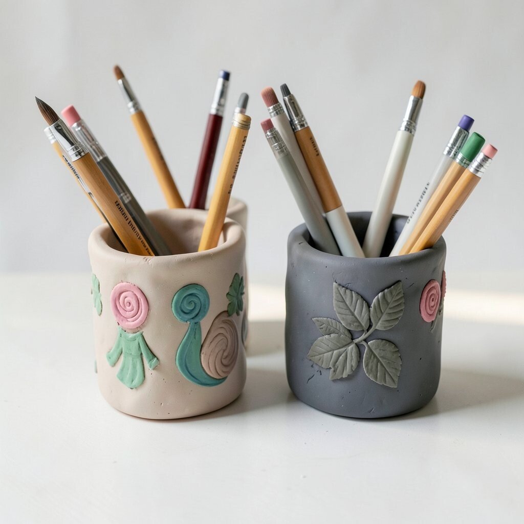 Decorative pen holders keep desks organized while adding a personal touch. They can be shaped into geometric or whimsical designs.