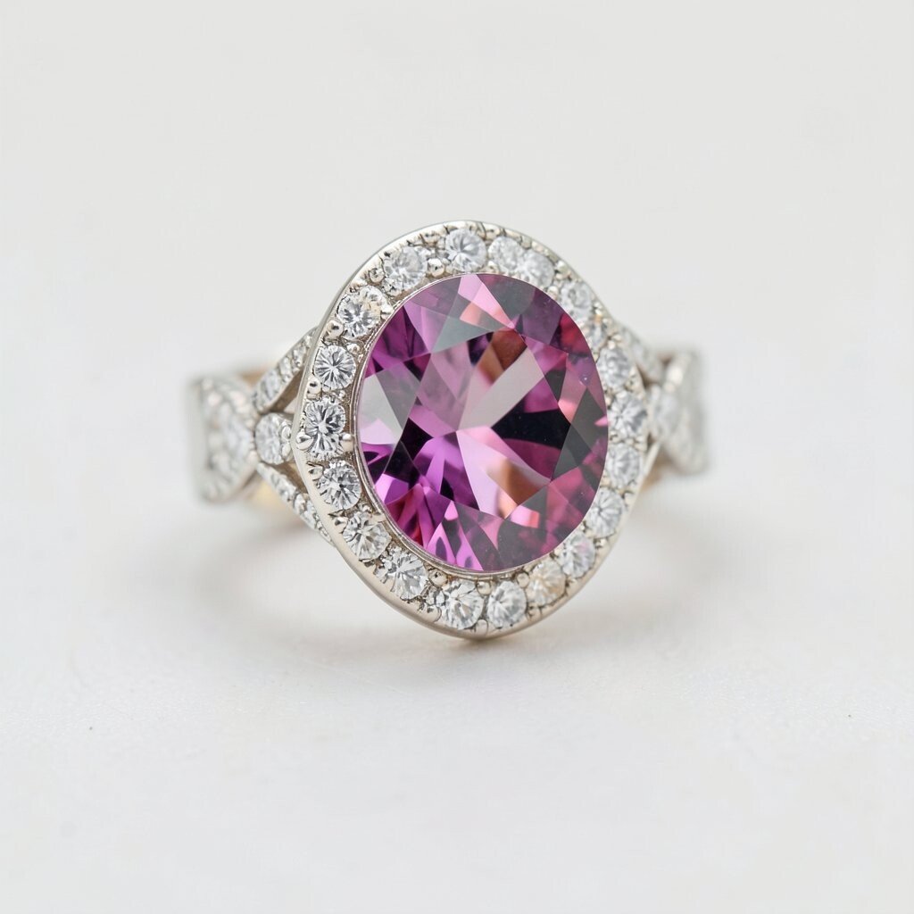 You might want to explore different diamond shapes for the halo. Try round or cushion cuts to see what complements the alexandrite best. This style is ideal if you want your ring to stand out in any crowd.