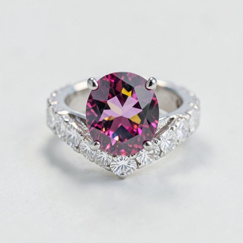 The design highlights the stone’s dynamic color changes with every movement. This choice is perfect for those who love a bit of sparkle. It’s a ring that catches light from every angle.