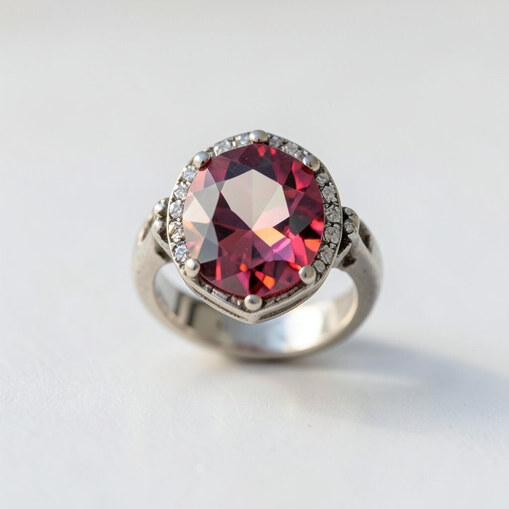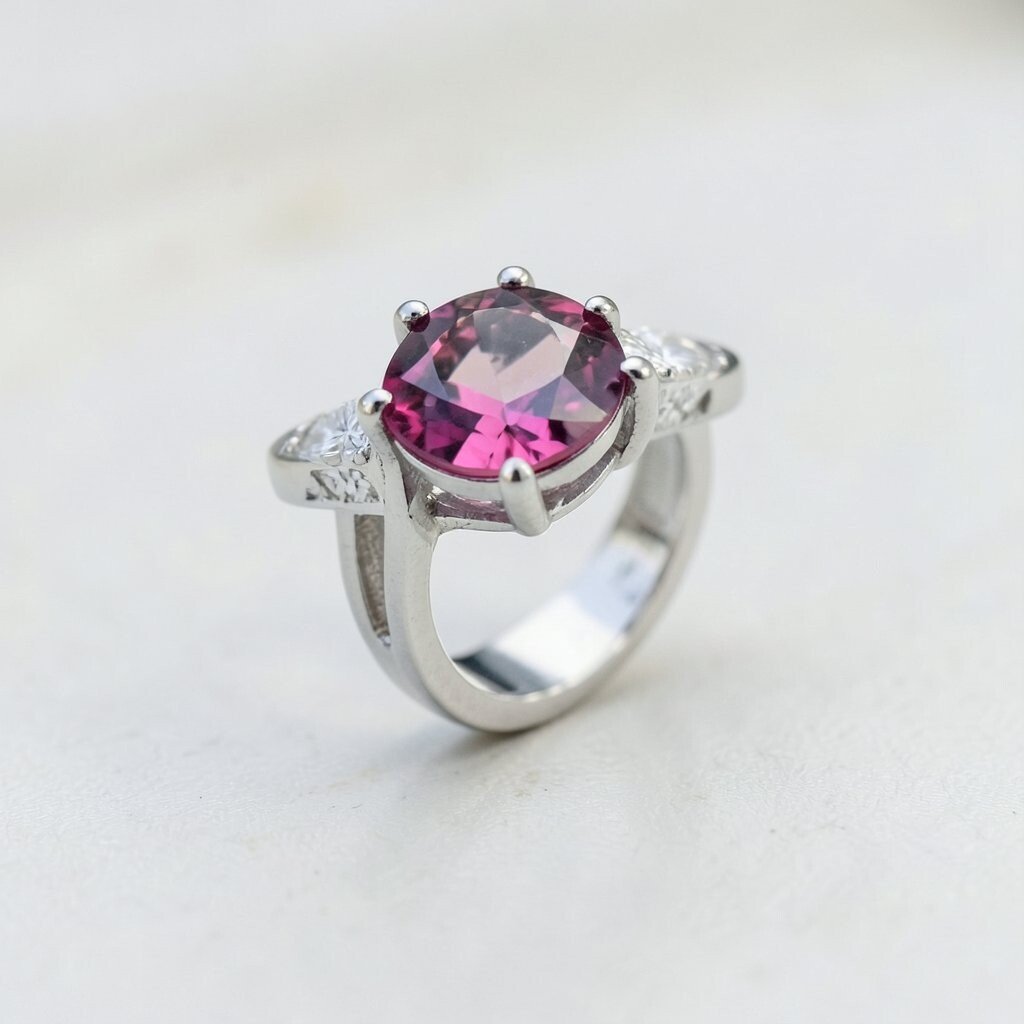 A thin band with a small alexandrite stone offers a subtle yet sophisticated look. It’s ideal for stacking with other rings or wearing alone for a refined touch.