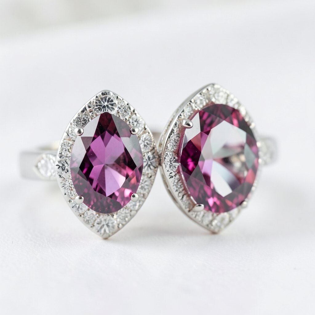 For a modern twist, consider a ring that intertwines alexandrite and diamonds. This design symbolizes the intertwining of two lives.