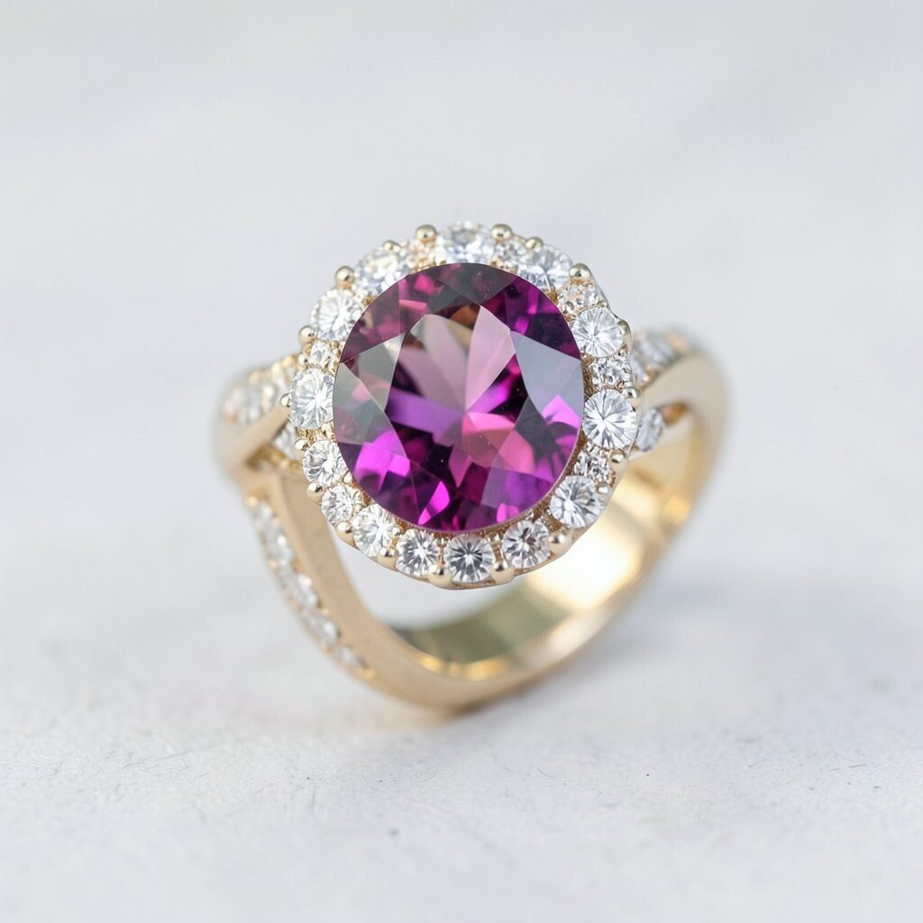 Surround your alexandrite with a halo of sparkling diamonds. This setting enhances the gemstone’s brilliance and adds an extra touch of glamour.
