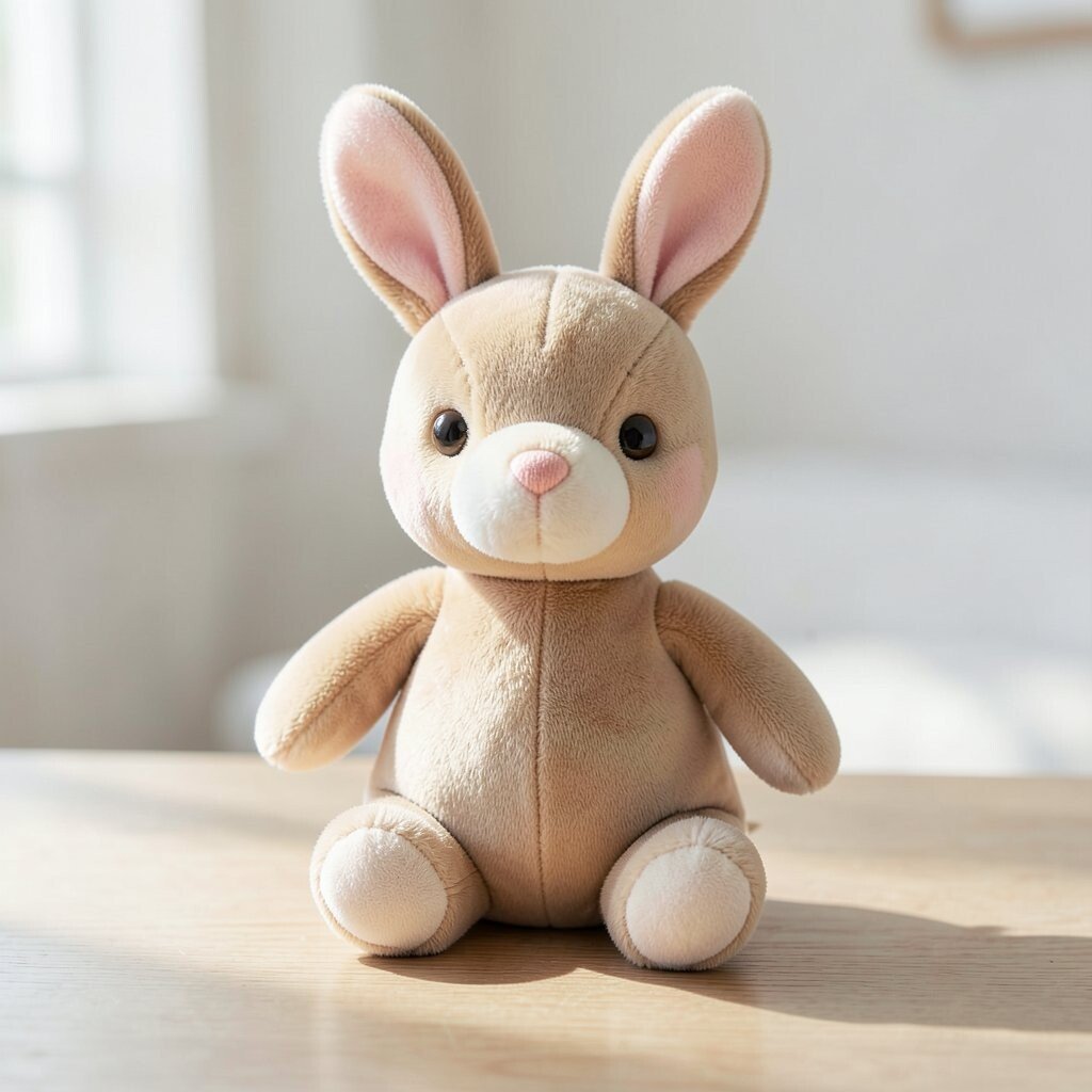 A bunny ear cuddle doll is soft, sweet, and easy to hug. Long ears, a round tummy, and a tiny nose make it look gentle and friendly.