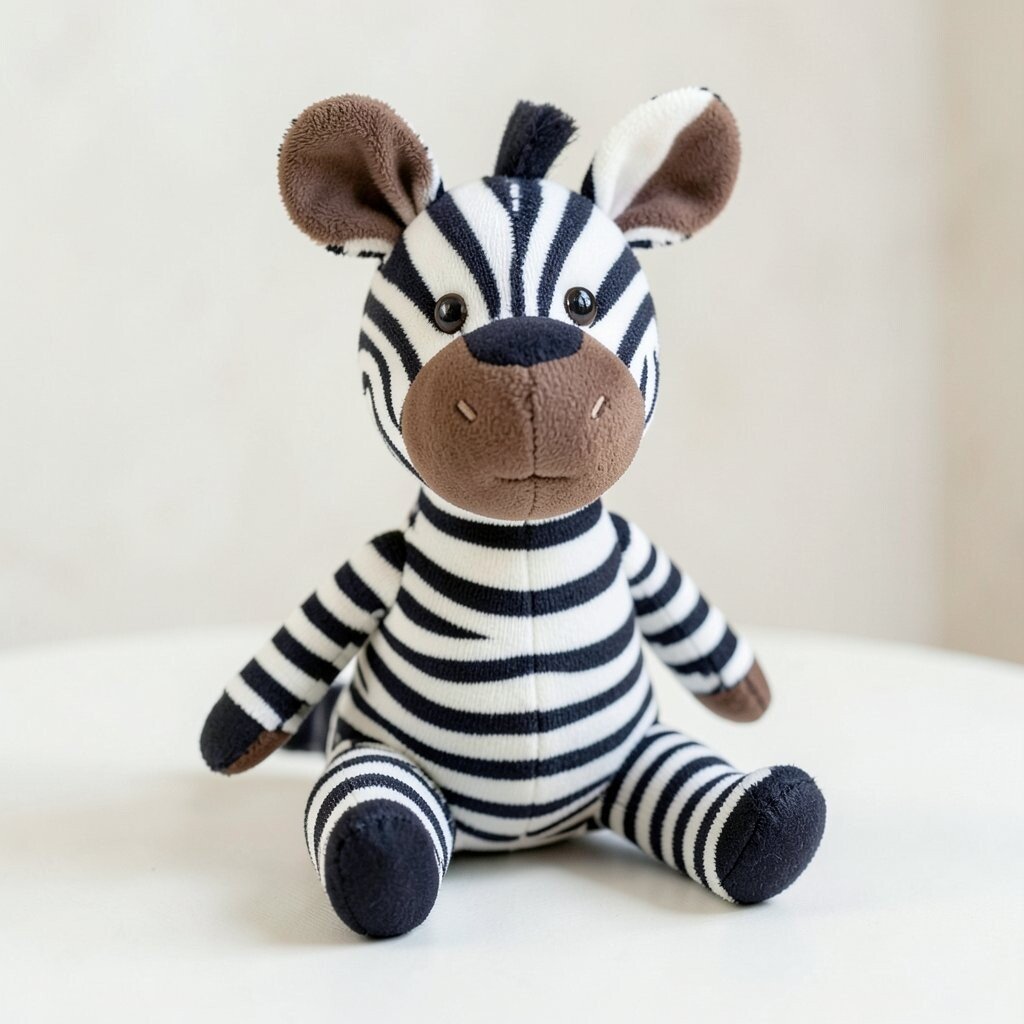 A zebra stripe critter has bold black-and-white lines that make it stand out right away. Its simple shape can be a horse, a blob, or a tiny stuffed friend with a zebra face.