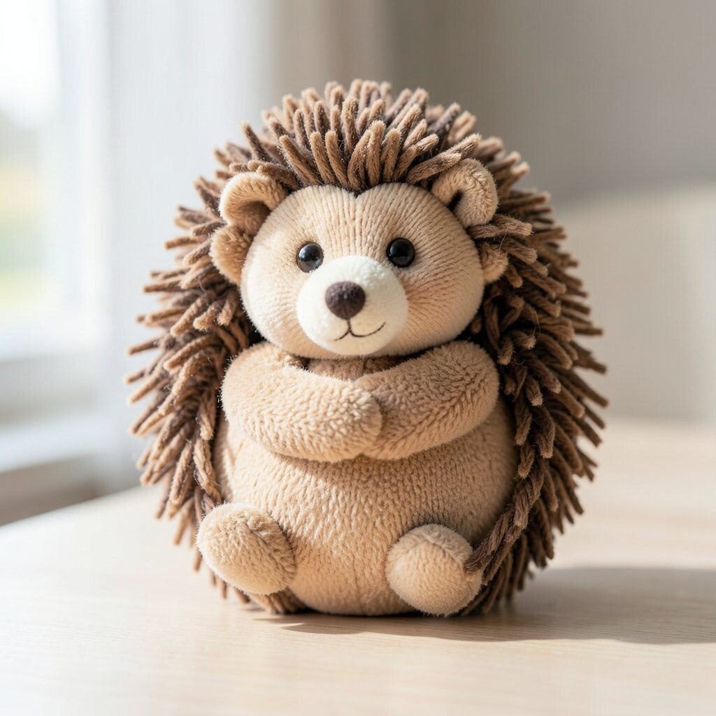 A hedgehog hug ball is round, soft, and covered in little felt spikes that look cute instead of sharp. Its small size makes it easy to carry, squeeze, or roll.