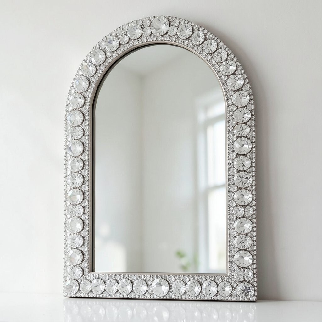 Glamorous crystal-studded arch mirrors bring sparkle and luxury to any room. Their dazzling appearance captures light beautifully.