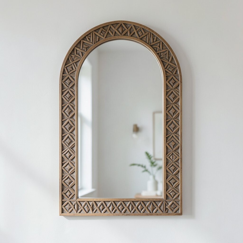 Geometric pattern arch mirrors are perfect for adding a modern twist to traditional design. Their bold, angular designs create visual interest.