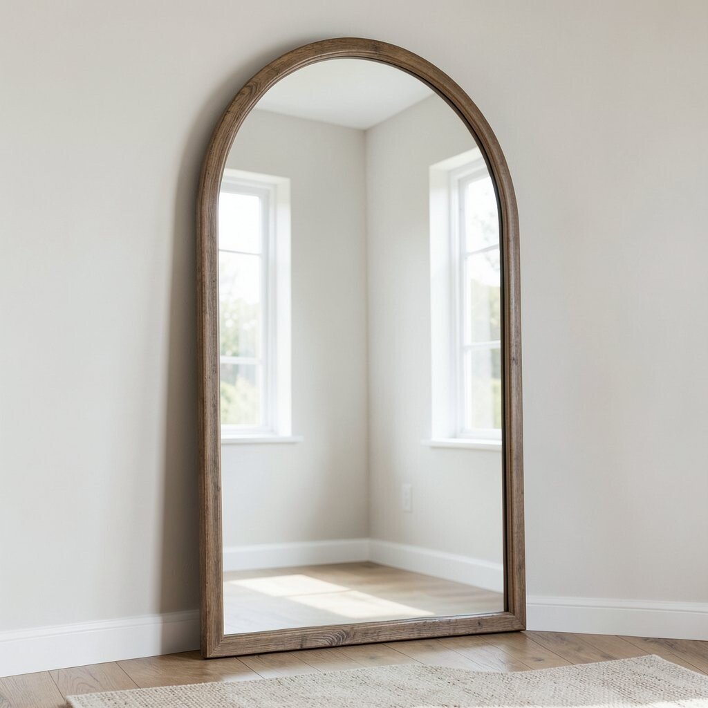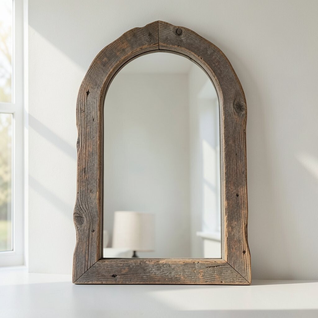 Rustic wooden arch mirrors bring warmth and a natural feel to any space. They are perfect for those who love a farmhouse aesthetic.