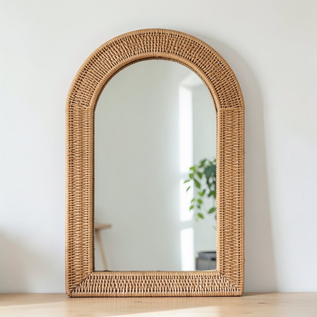 Embrace a bohemian style with a rattan arch mirror. This mirror brings a carefree and artistic vibe to your living space.