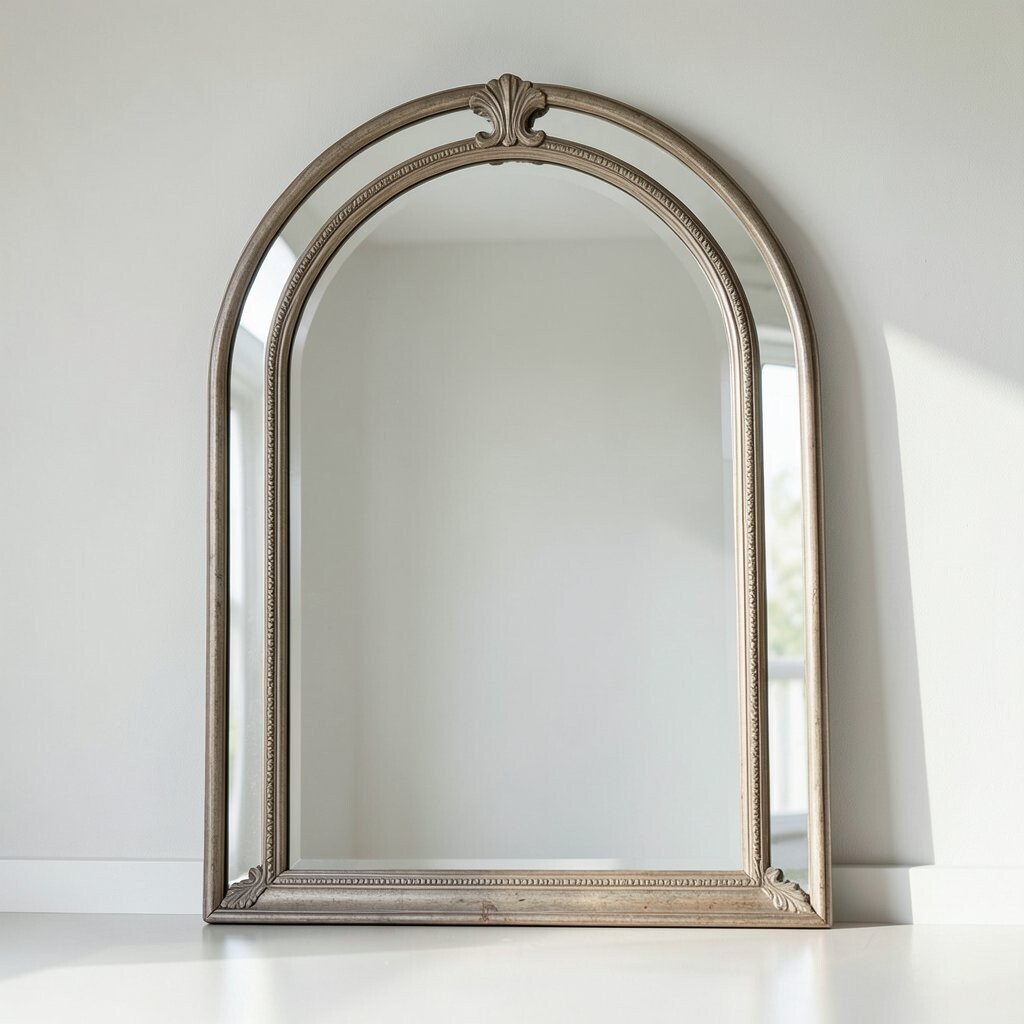 An antique silver arch mirror can add a touch of glamour and sophistication. Its intricate design often recalls the elegance of bygone eras.