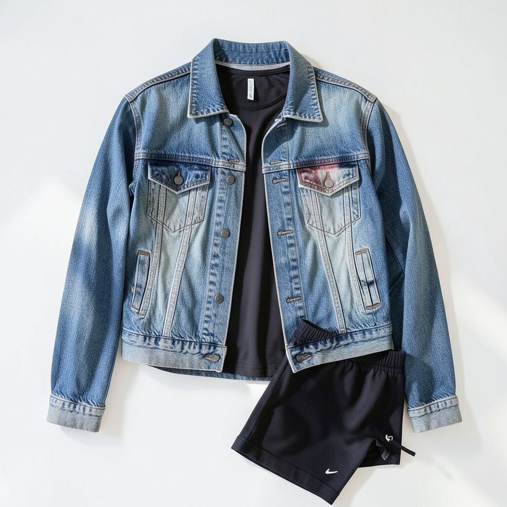 A denim jacket is a classic piece that complements any athleisure set. It adds a layer of style without overwhelming the outfit.