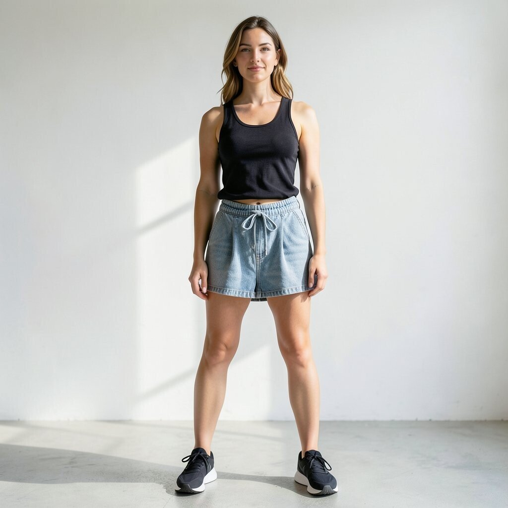 Pair it with your favorite sneakers for a sporty yet feminine look. The versatility of this outfit makes it suitable for various occasions.