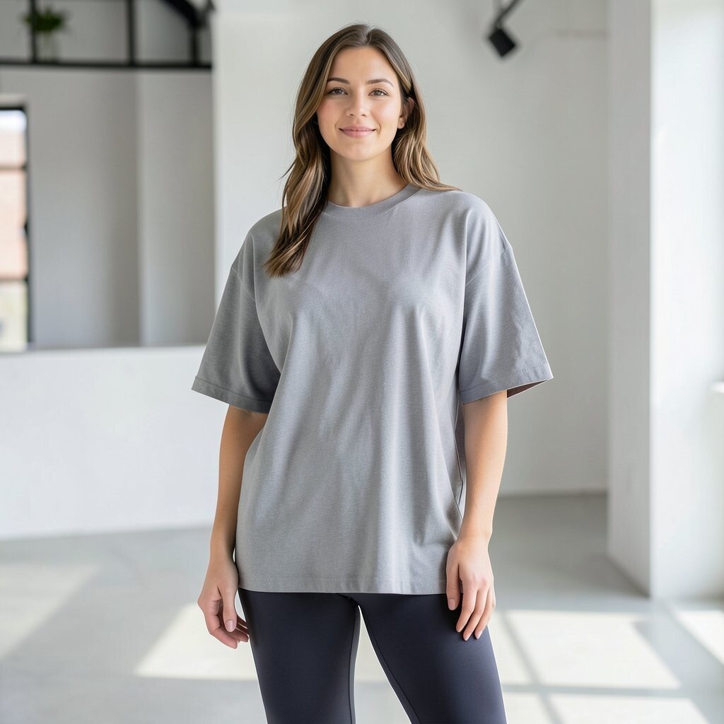 An oversized t-shirt provides the perfect relaxed vibe. Pair it with leggings for a comfortable and stylish look.