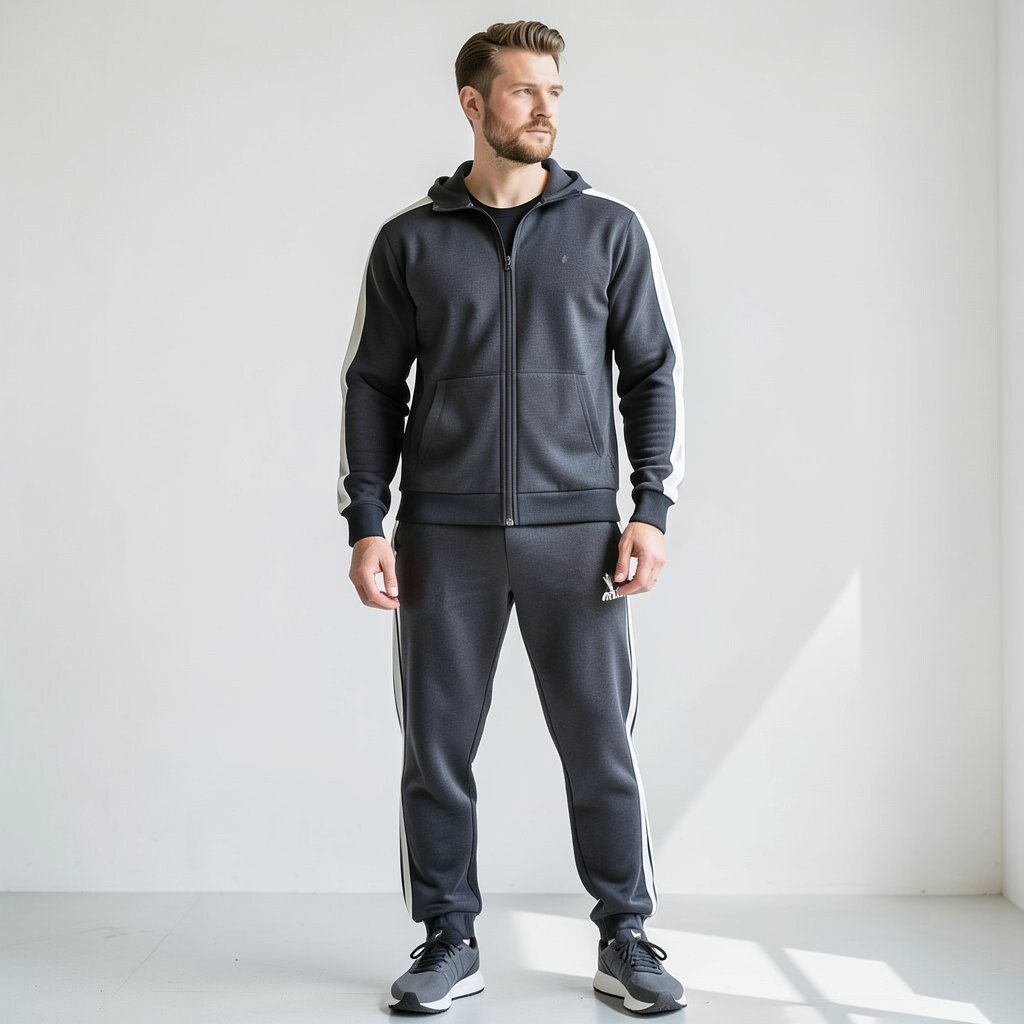 A monochrome tracksuit is the ultimate in sleek style. It’s easy to wear and always looks coordinated.
