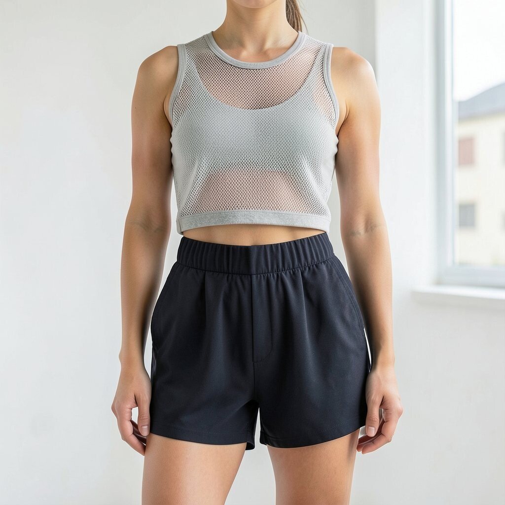 A mesh top adds a hint of edginess to your athleisure style. Pair it with high-waisted shorts for a sporty yet chic look.
