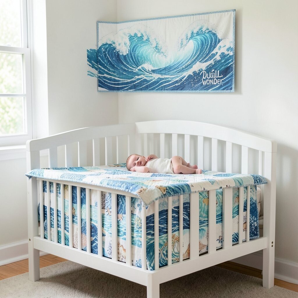 Dive into a sea of tranquility with this ocean-themed quilt. Shades of blue and green mimic the calming waves of the sea.