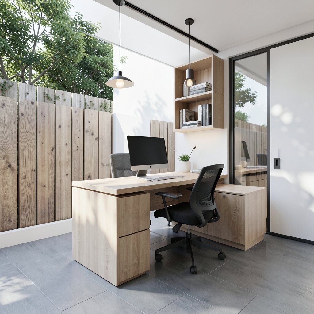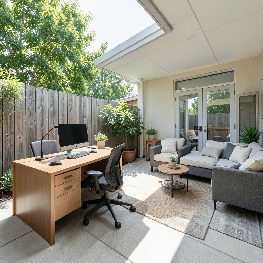 The trend of blending indoor and outdoor spaces makes this a contemporary choice for backyard offices.