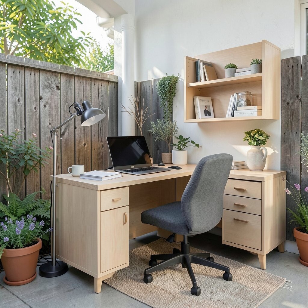 An outdoor patio office is ideal for those who love fresh air and sunshine. Set up a workstation on your patio with comfortable seating.