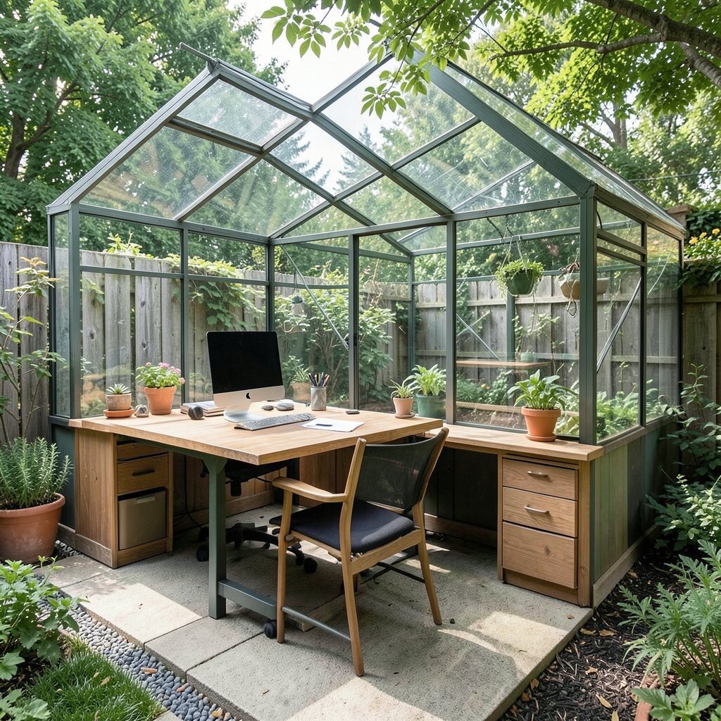 A glasshouse office lets in plenty of natural light, creating a bright and airy environment. Surrounded by greenery, it feels like working in a secret garden.