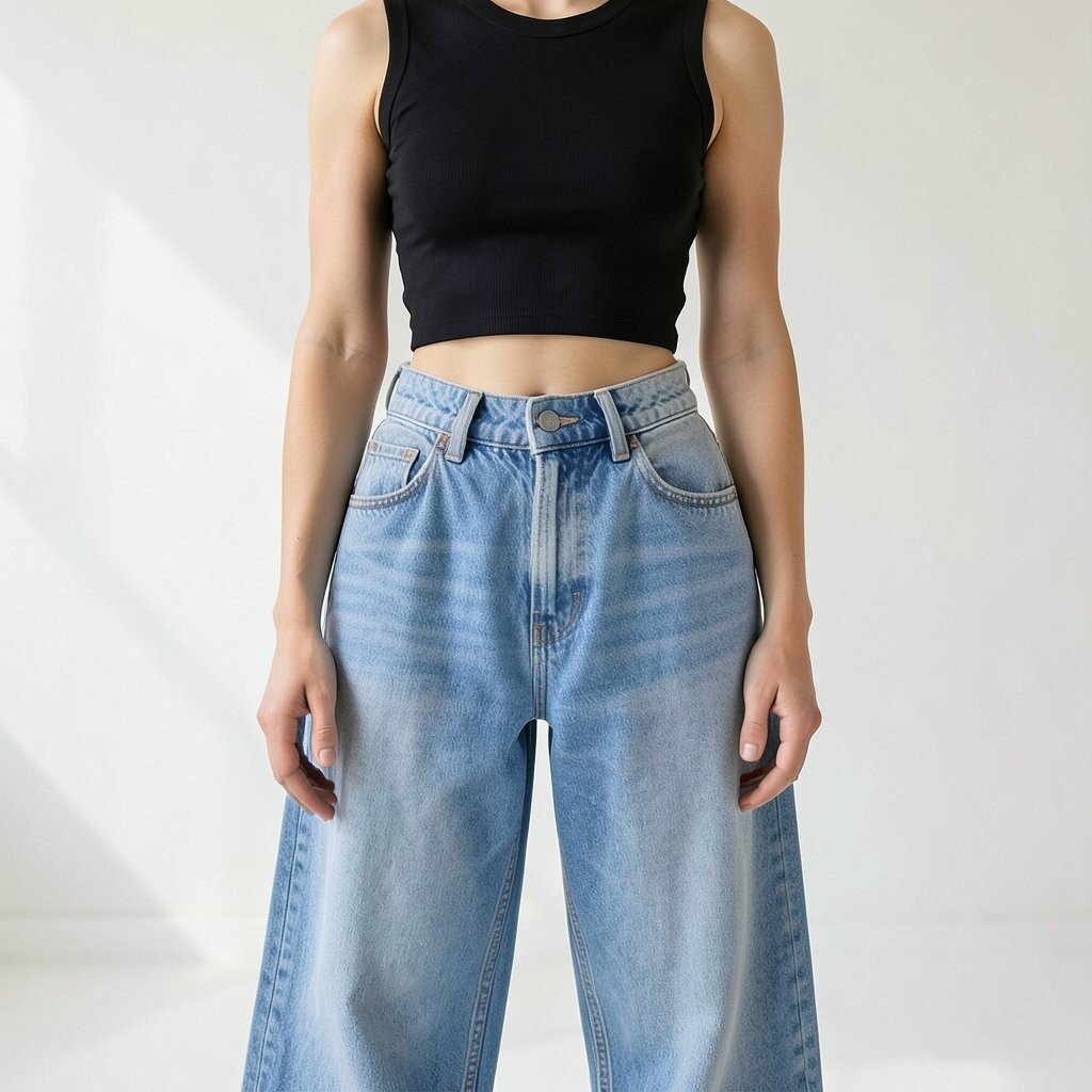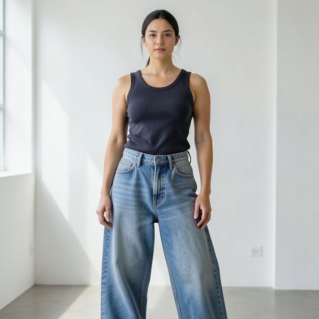 A simple tank top paired with baggy jeans offers a minimalist yet trendy look. It’s a great way to stay cool during warmer months.