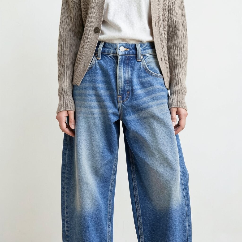 Layering a cardigan over baggy jeans is perfect for transitional weather. This look is cozy and stylish.