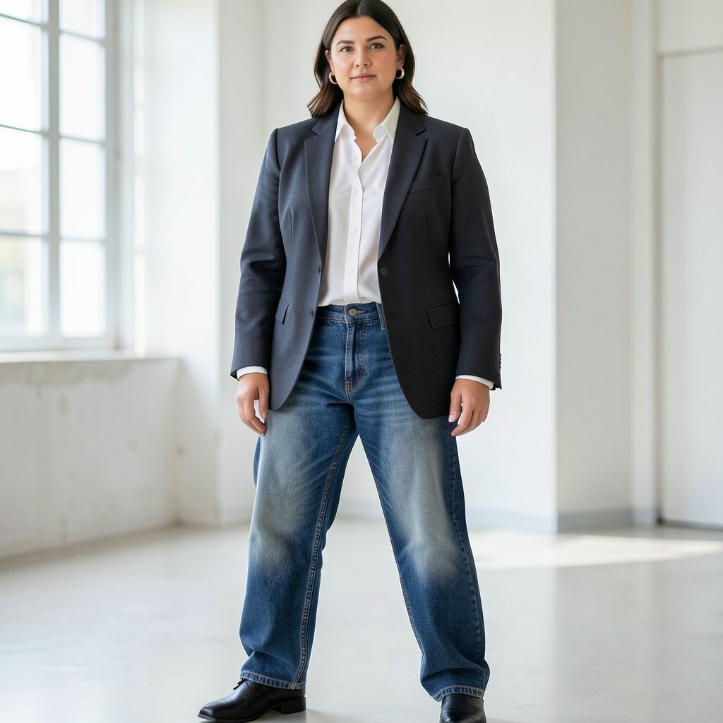 For a more polished look, a blazer over baggy jeans is a fantastic choice. This style is both chic and professional.