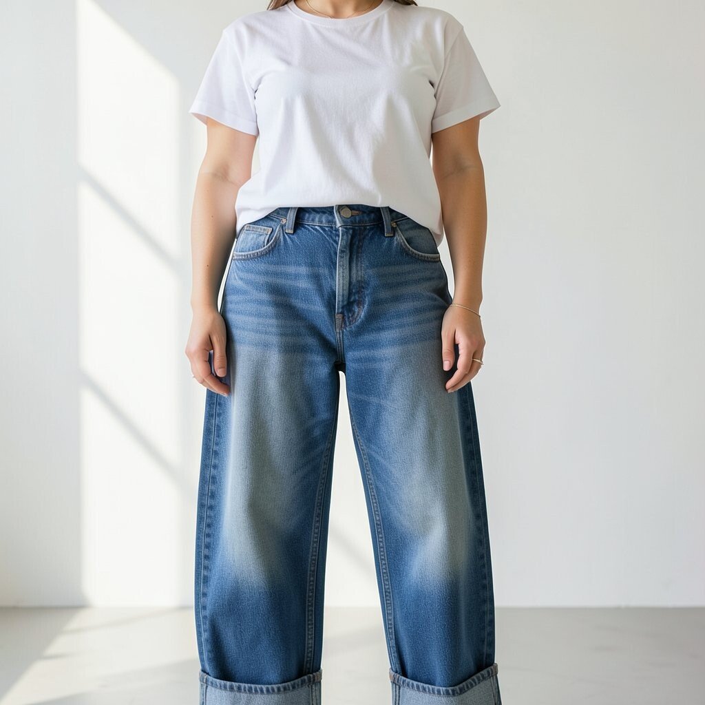 Pairing baggy jeans with a plain white tee is a classic yet trendy combo. It’s an outfit that screams relaxed elegance.