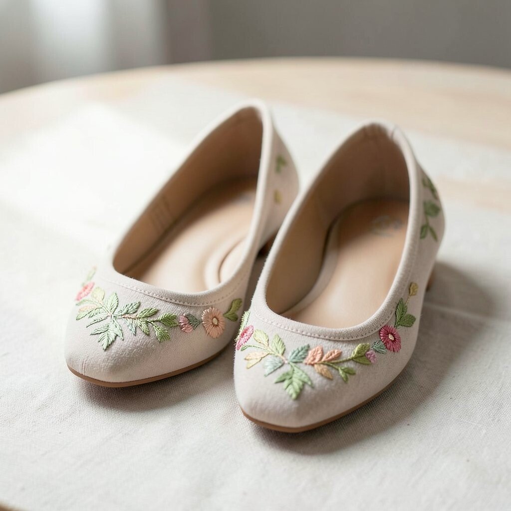 Embroidered flats showcase intricate designs and craftsmanship. The embroidery adds a unique, artistic flair.
