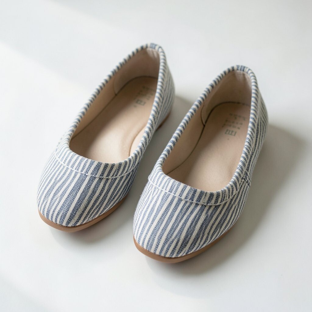 Striped canvas flats offer a casual yet trendy vibe. Their lightweight material is perfect for warmer days.