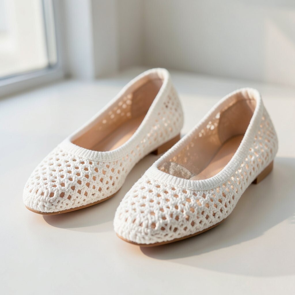 White crochet flats are a delicate and airy option. Their intricate design adds a handcrafted touch.