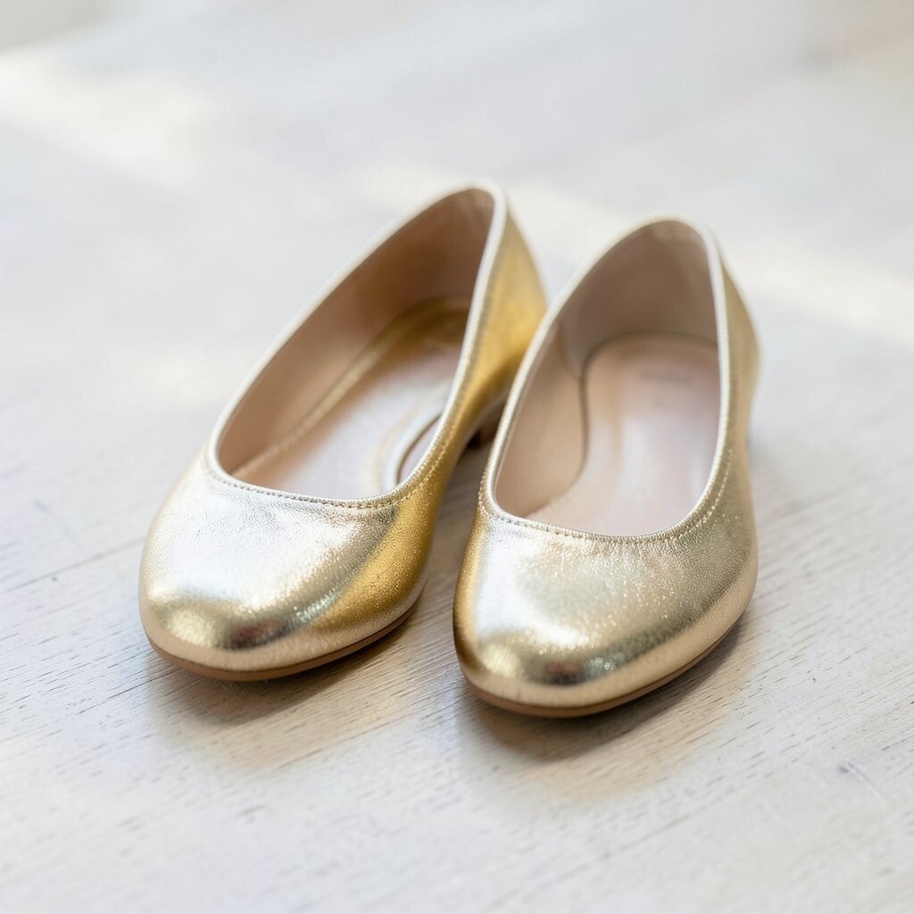Step into the limelight with metallic gold flats. Their shimmering finish makes them a standout piece.