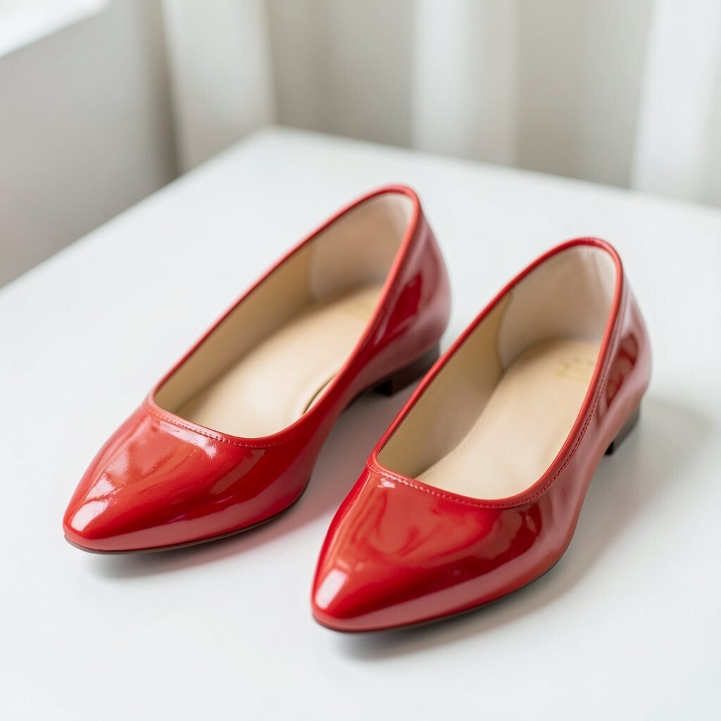 Red patent leather flats bring a bold pop of color to your wardrobe. The glossy finish adds a playful touch.