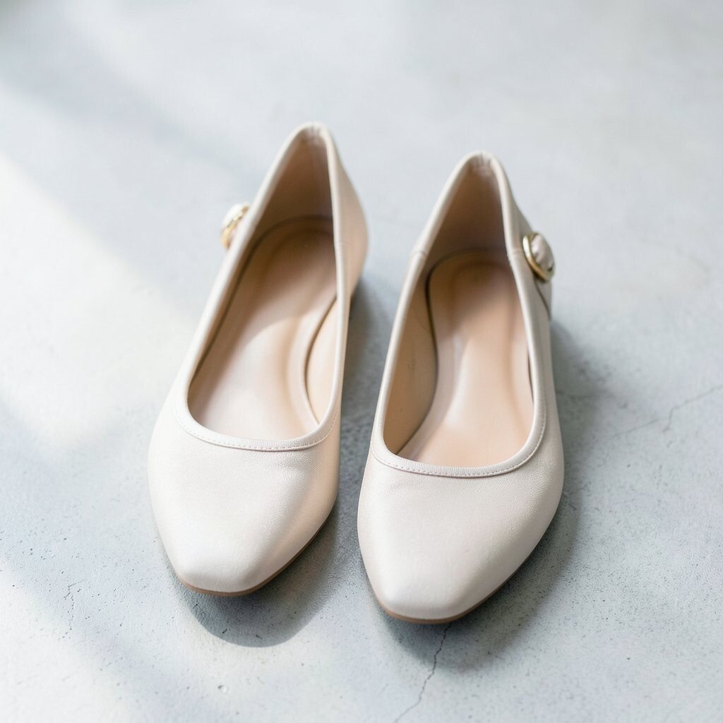 Pastel pink flats are sweet and subtle. They bring a soft, feminine touch to your look.