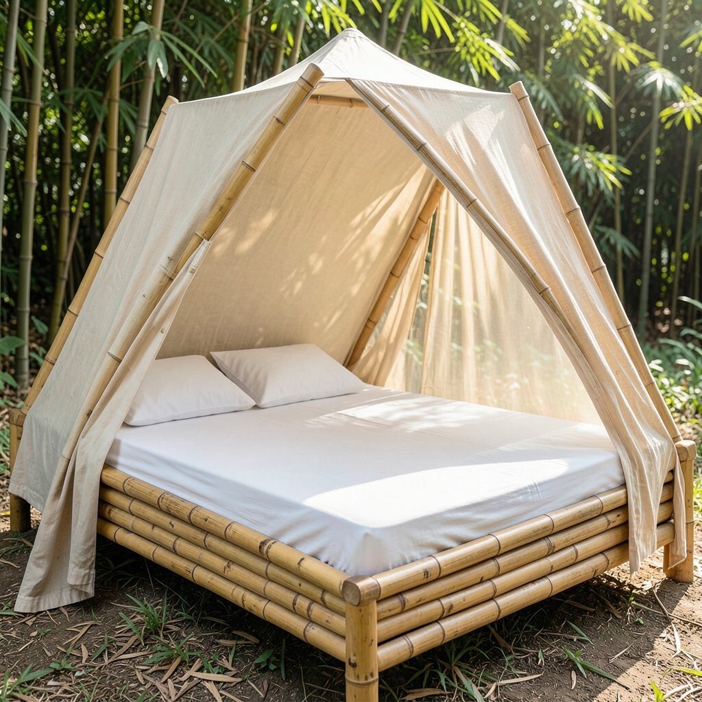 They create a dreamy atmosphere, perfect for a restful retreat. The natural fibers allow light to filter through softly, enhancing the ambiance. Consider a bamboo canopy for a bohemian or rustic vibe.