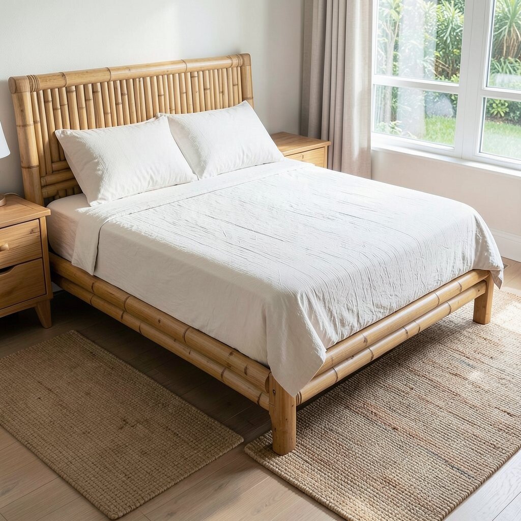 For a cohesive look, pair the bed frame with bamboo nightstands or dressers. This creates a harmonious and stylish bedroom retreat.