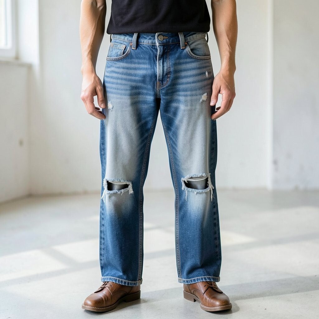 Distressed barrel jeans bring an edgy vibe to your outfit. They offer a perfect blend of casual and cool.