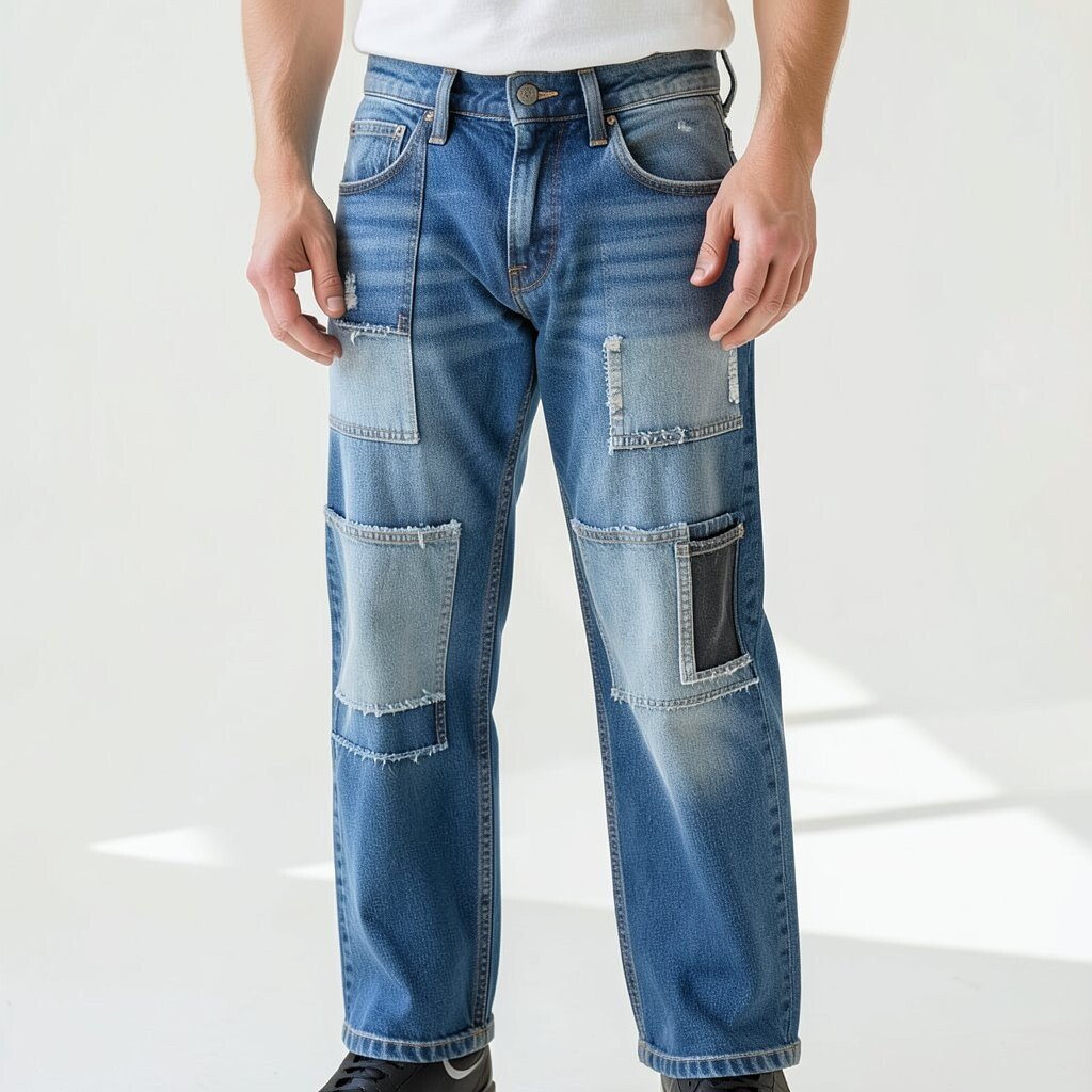 Patchwork barrel jeans bring a touch of artistry to your clothing. Each pair is unique, making it a standout piece in your wardrobe.