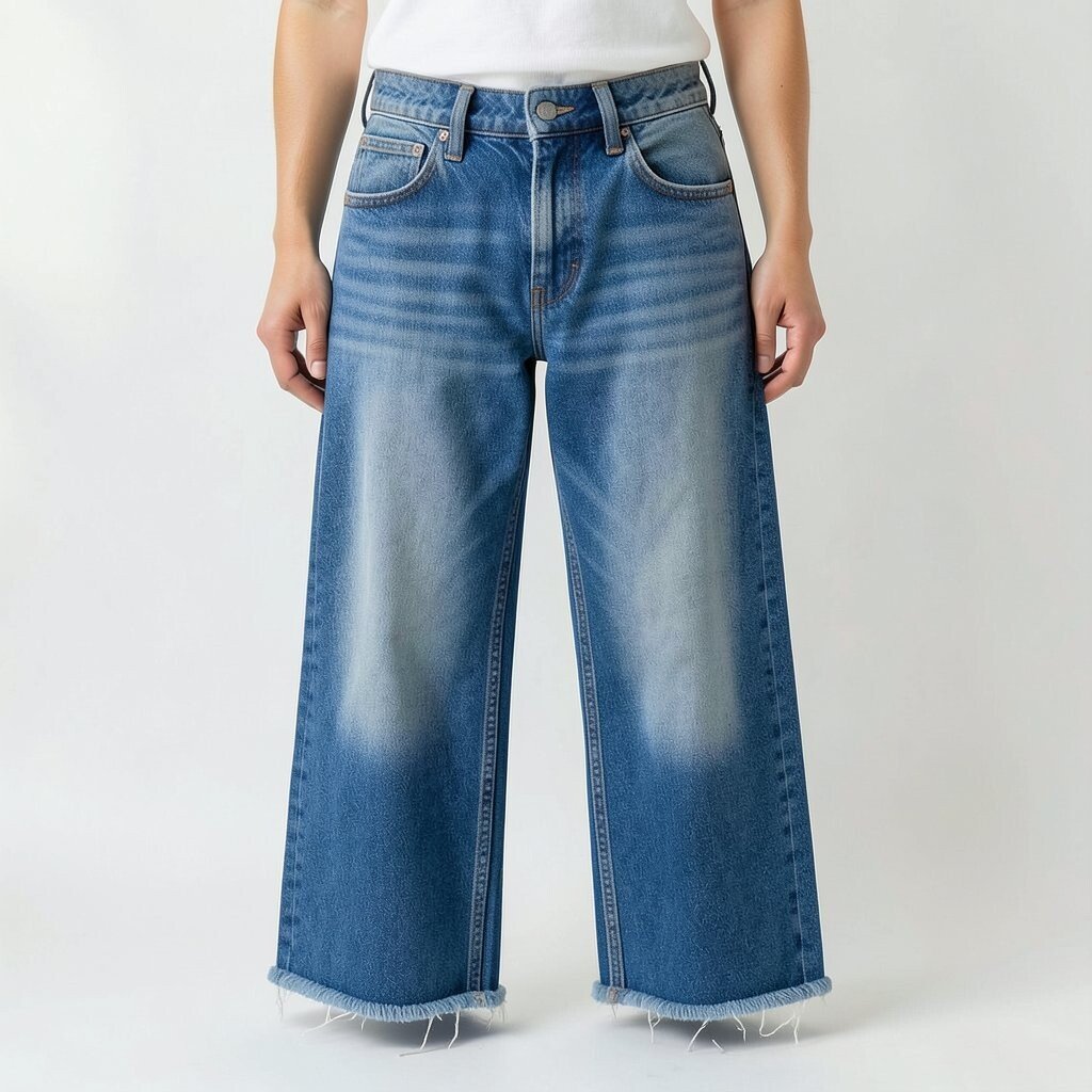 Cropped barrel jeans with frayed hems are a playful take on traditional denim. The frayed edges add a casual, carefree vibe.