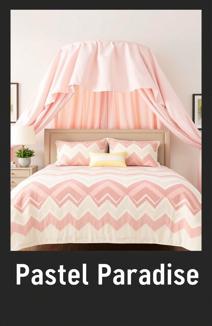 Soft pastels create a serene and gentle ambiance. The batik chevron pattern adds a whimsical touch.