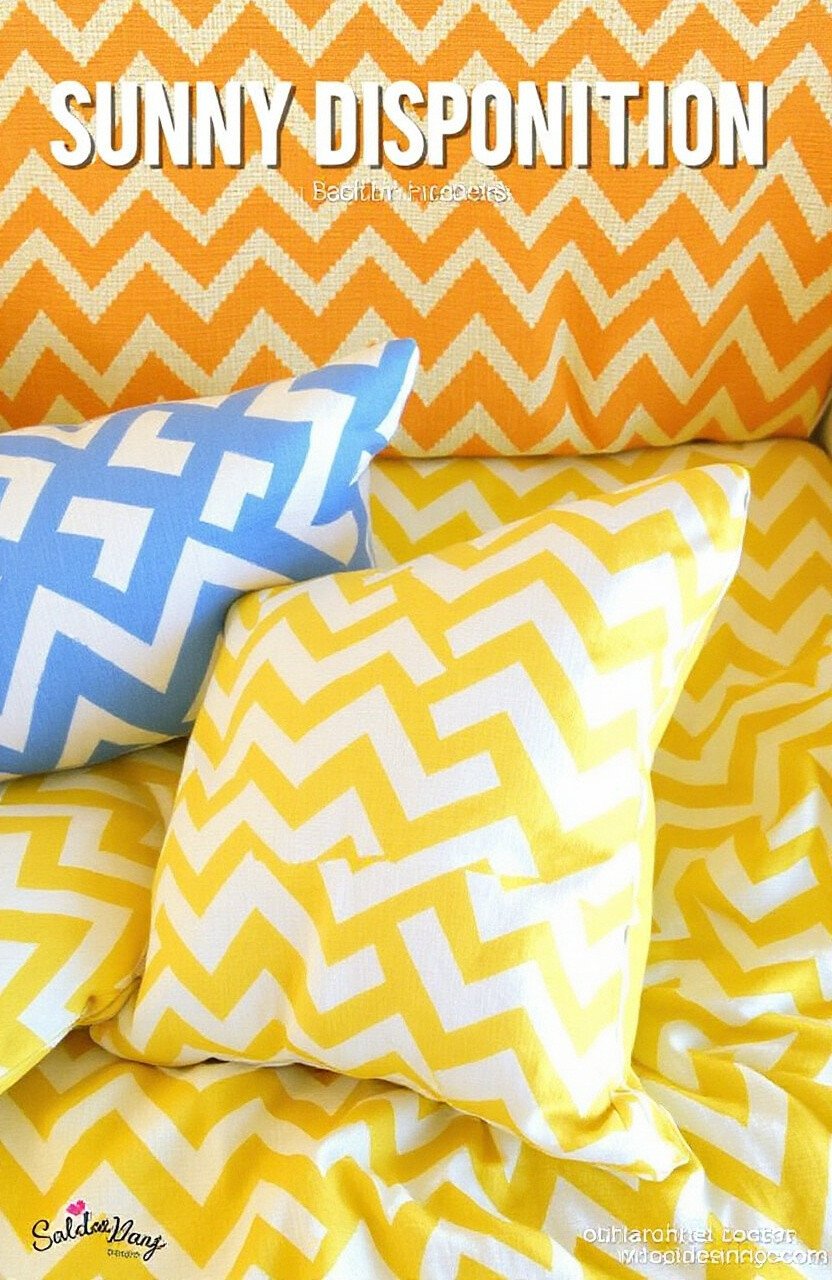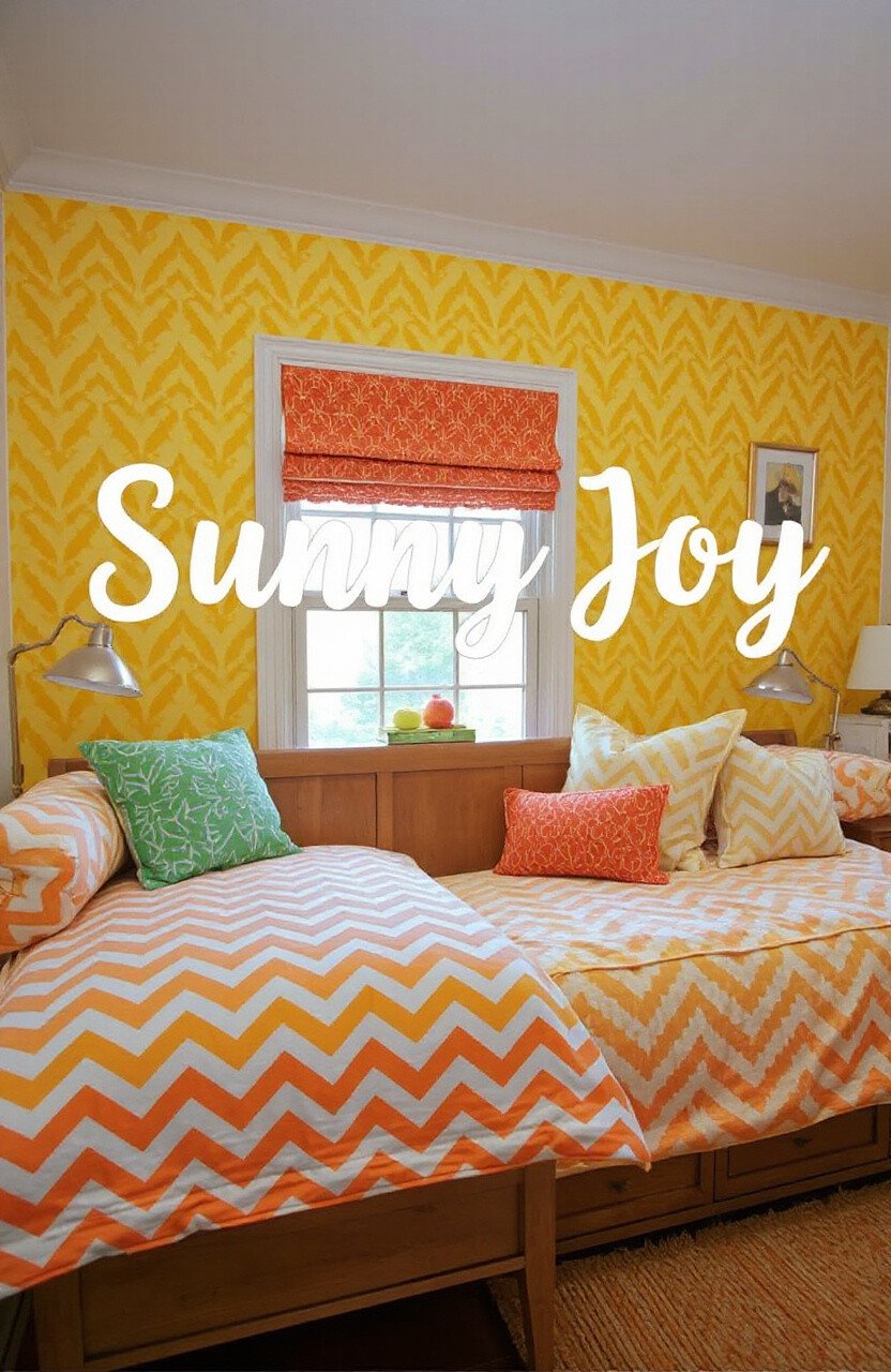 Bright yellows and oranges create a cheerful, joyful feel. The batik chevron pattern adds a playful touch.