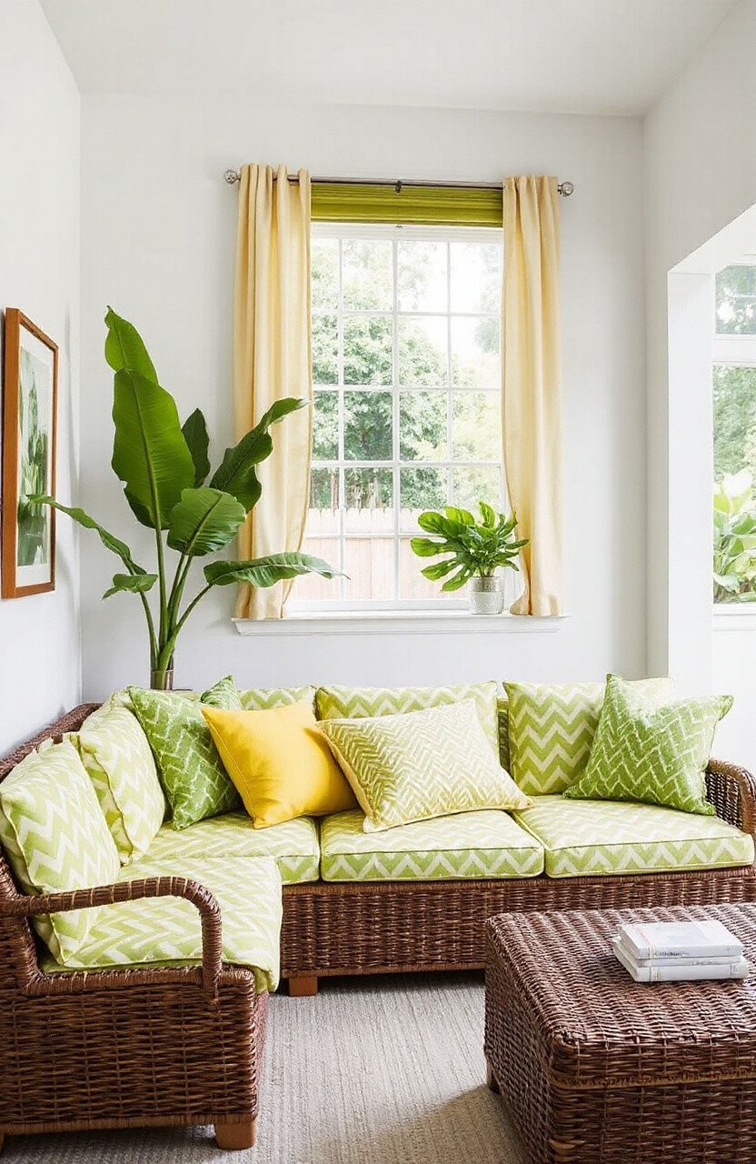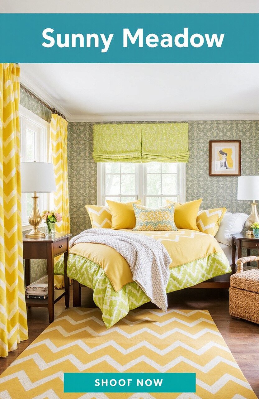 Bright yellows and greens bring a sunny meadow into your home. The batik chevron pattern adds a playful touch.