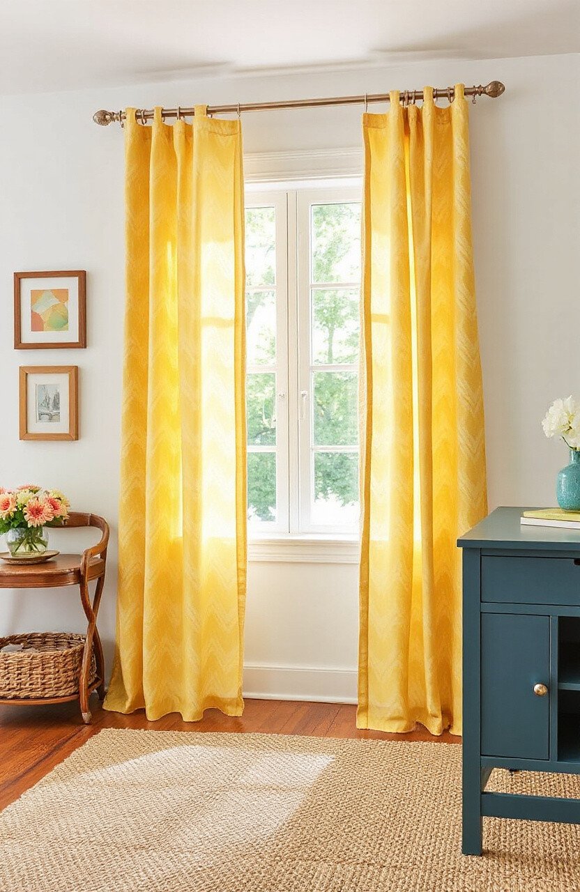 Bright yellows and oranges create a cheerful, sunny feel. The batik chevron pattern adds a playful touch.