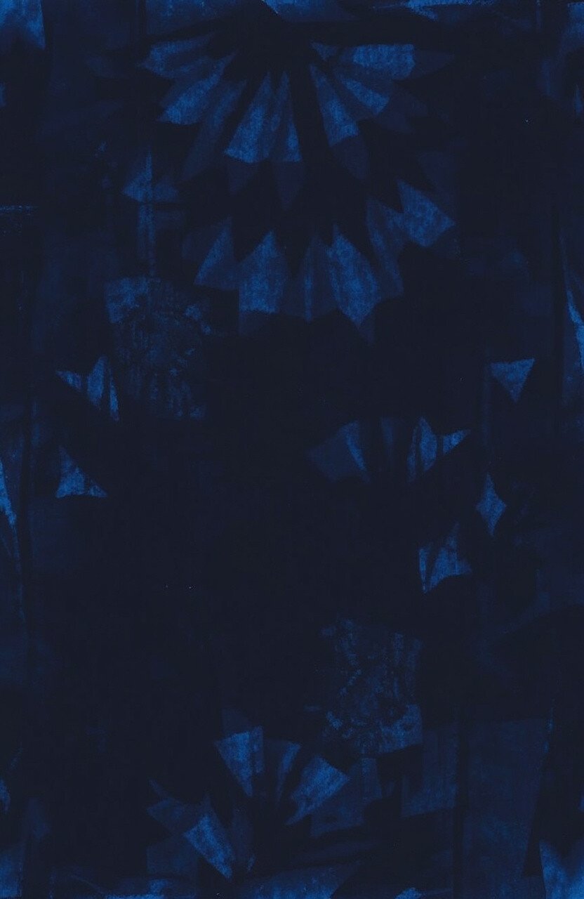 Dark and mysterious, this cover features deep blues and blacks. The chevron pattern adds a modern twist to the classic batik.