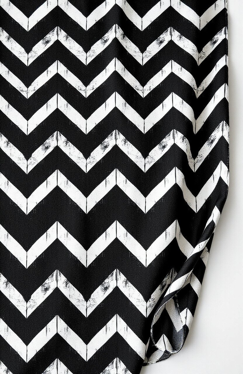 Timeless black and white create a sophisticated look. The chevron pattern adds a touch of drama.